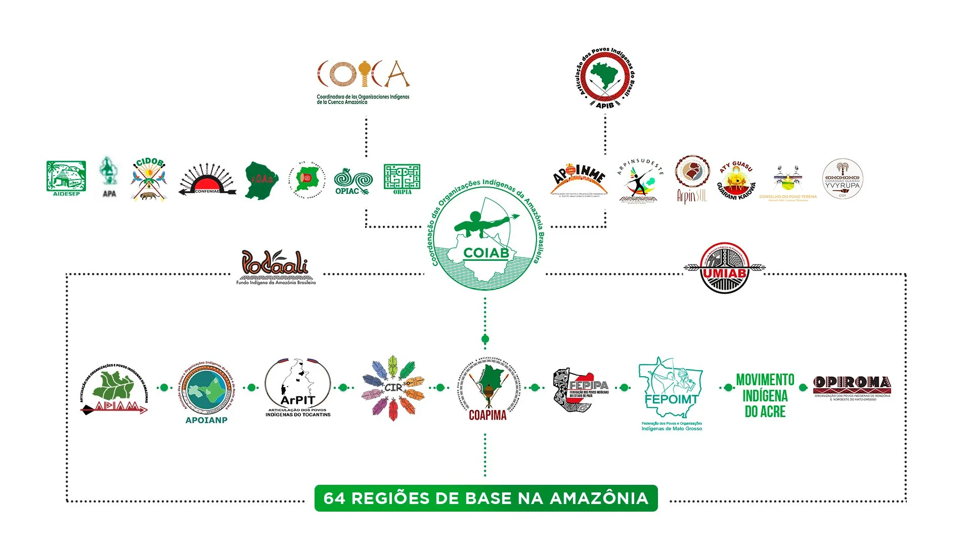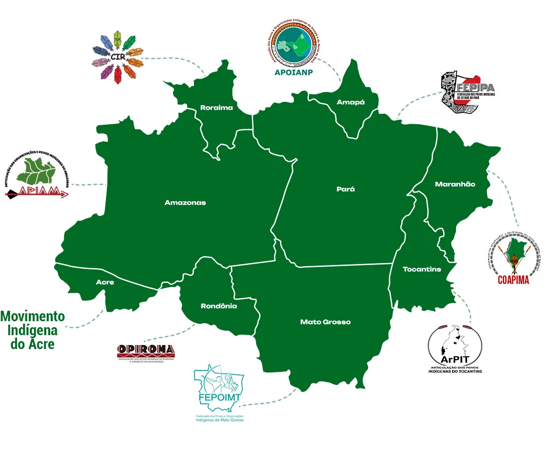 Organização Indígena Regional: FOIRN, FOCIMP, FOCCIT, OPIAM, CIM, OPITTAMP, UNIVALA, UNIPI, UPIMS, CGTSM, CGPH, COPIME