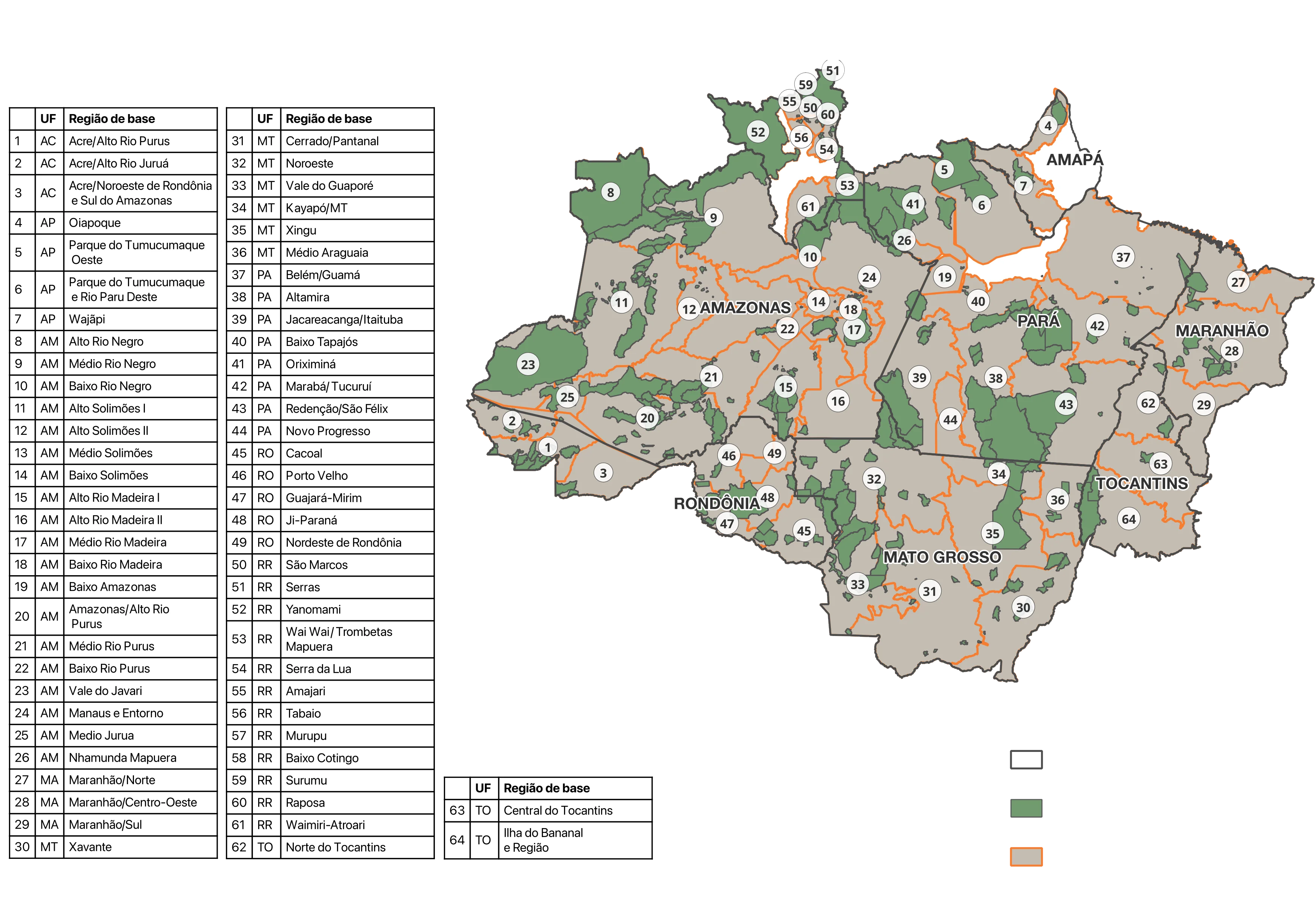As Subregionais (áreas geográficas de atuação das organizações indígenas regionais que compõem as regiões do Amazonas):