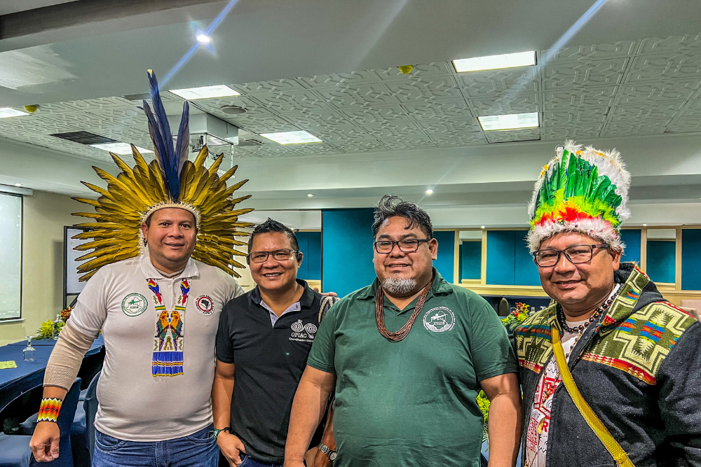 Lideranças indígenas da Bacia Amazônica, no encontro realizado em Bogotá, Colômbia. (Foto: Alana Manchineri, 2024)
