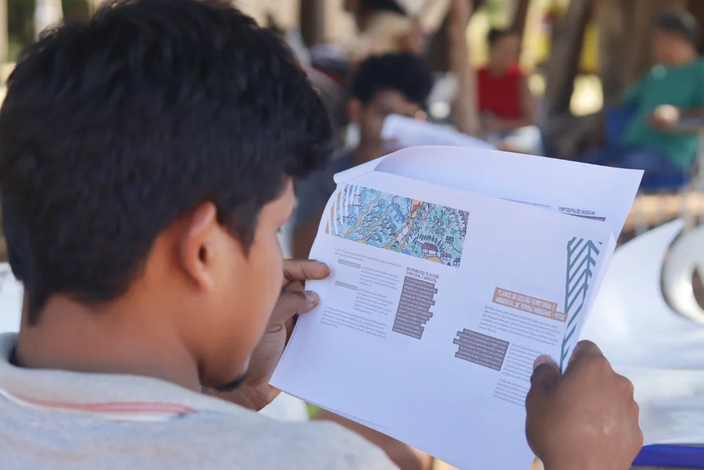 Brigadista estuda material sobre a PNGATI