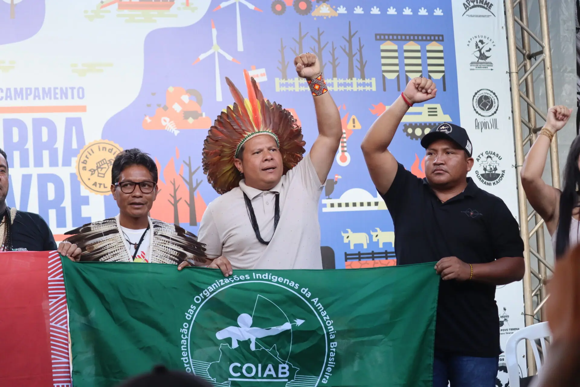 Representando a Coiab na coordenação executiva da Articulação dos Povos Indígenas do Brasil (Apib), Kleber Karipuna fez uma fala de encerramento marcada pelo agradecimento às delegações e pela reafirmação do protagonismo das bases.