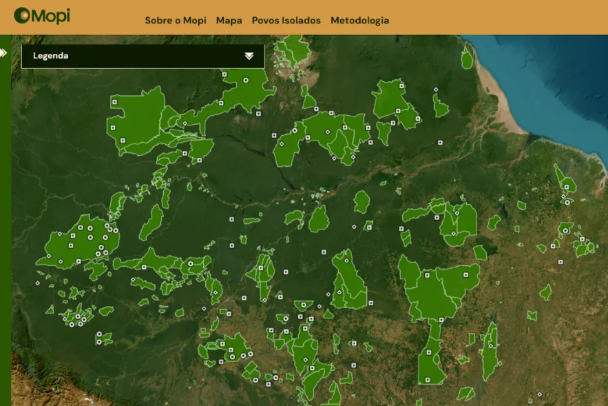 O Mopi é uma plataforma geoespacial, tendo como recorte principal os 114 registros de povos isolados reconhecidos pelo estado brasileiro – através da Fundação Nacional dos Povos Indígenas (Funai) – mais um registro confirmado em 2021, mas não foi reconhecido pela gestão anti-indígena do governo Bolsonaro, de um grupo em isolamento vivendo na região do Mamoriá, no sul do Amazonas. Voltada ao monitoramento da situação de vulnerabilidade vivenciada por povos indígenas isolados, a ferramenta mapeia, portanto, 115 registros visualizados a partir de um mapa interativo. As localizações dos registros aparecem com as coordenadas deslocadas, propositalmente, para evitar a identificação exata dos territórios desses povos, pelo risco de ataques contra eles.