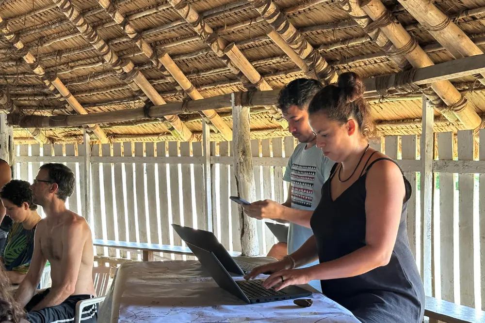 Equipe Iepé em atividade na oficina. Foto: Robson Baré. TI Kaxuyana Tunayana – PA (2025)