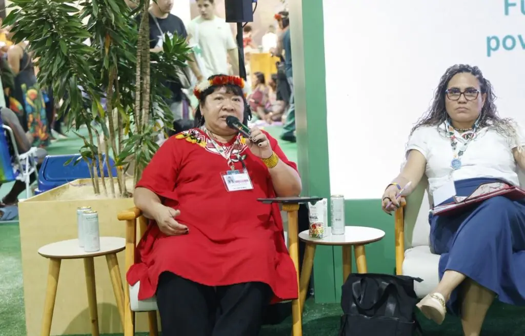 A defesa do fortalecimento da governança territorial indígena ganhou destaque no painel “Fundo Amazônia: Guardiões da Floresta – os povos indígenas e comunidades tradicionais”, realizado na terça-feira (18) no Pavilhão do BNDES, na Zona Verde da COP30. A Coordenação das Organizações Indígenas da Amazônia Brasileira (Coiab) levou ao debate a necessidade de mecanismos que garantam financiamento direto, consulta livre, prévia e informada, e respeito aos direitos dos povos da floresta.