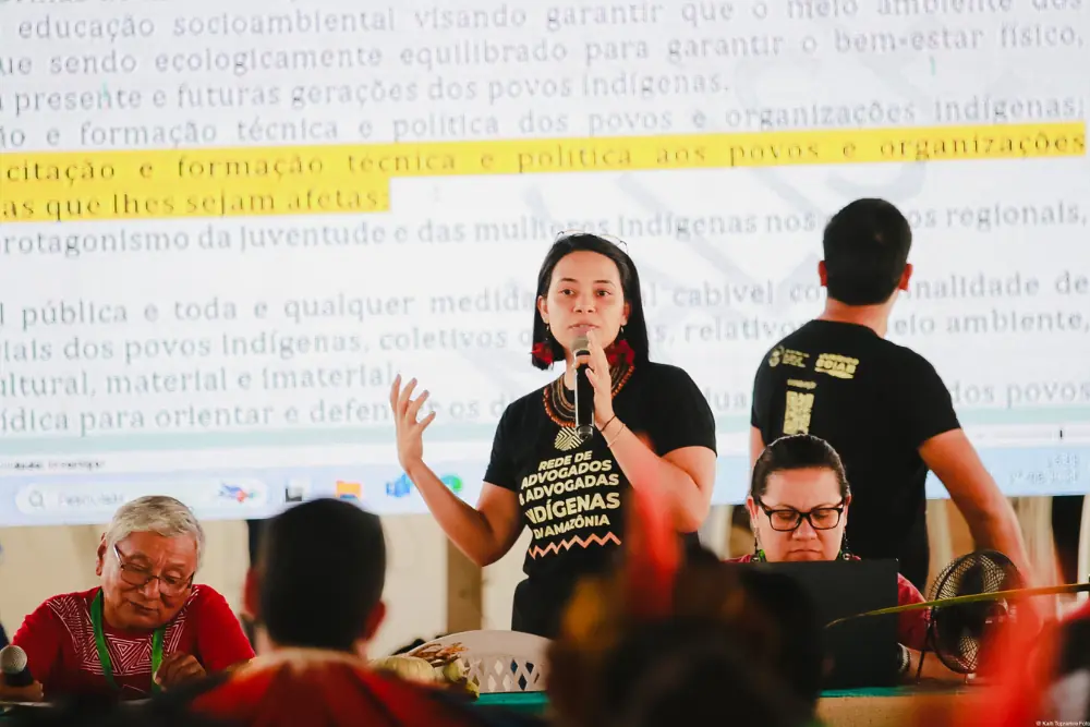 A Assessora Jurídica da Coiab, Dra. Kari Guajajara reflete sobre a importância de trazer essas revisões no estatuto para reforçar o compromisso da Coiab com os desafios da contemporaneidade. “O Estatuto Social reflete e delineia a missão institucional da Coiab, que deve se dedicar à defesa dos direitos coletivos dos povos indígenas da Amazônia brasileira, fundamentada nos princípios do respeito à diversidade cultural e da governança autônoma. A Assembleia Extraordinária revisa o Estatuto da Coiab, de forma coletiva, com os povos indígenas dos nove estados da Amazônia brasileira, para garantir que a organização permaneça adequada à legislação vigente, alinhada com a luta coletiva indígena e seus desafios atuais”, declara.