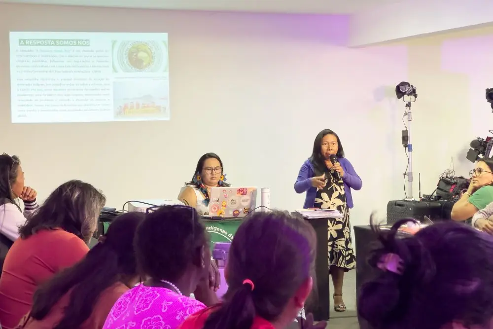 “Como Coiab, nós entendemos que a luta em defesa da Amazônia é uma luta coletiva, e nossa atuação ganha força quando reunimos nossas demandas, conhecimentos e estratégias sob um mesmo plano de ação. Recentemente, realizamos o Mutirão dos Povos em Belém, onde definimos nossas prioridades para COP30 enquanto movimentos sociais que representam a Amazônia. Agora, é a vez de unir as mulheres dos movimentos, para garantir que a agenda climática global leve em consideração a voz daquelas que defendem e sustentam a vida nos territórios”, afirma Angela Kaxuyana, representante da Coiab na Bacia Amazônica.