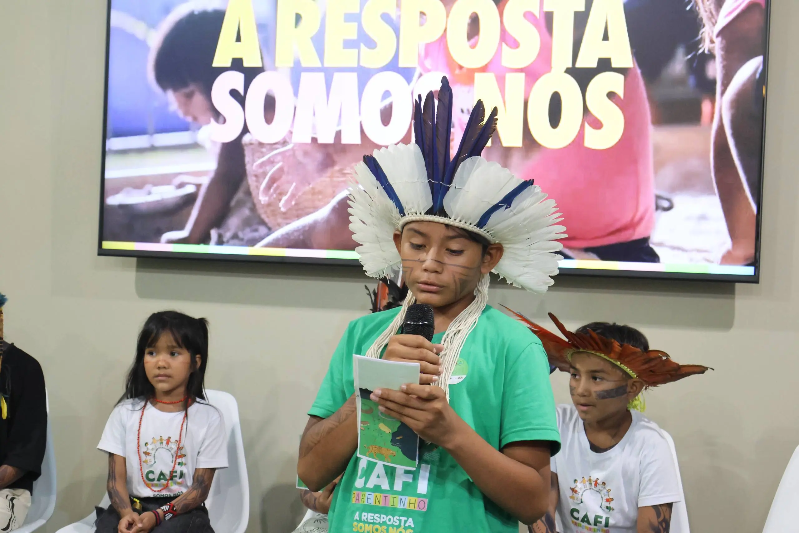 Para integrar crianças indígenas aos debates sobre o futuro do planeta, a Coordenação das Organizações Indígenas da Amazônia Brasileira (Coiab) promove mais uma edição do ‘Cafi Parentinho’ durante a COP30. A iniciativa desenvolvida pelo Centro Amazônico de Formação Indígena (Cafi) leva a delegação para atividades em espaços oficiais do evento.