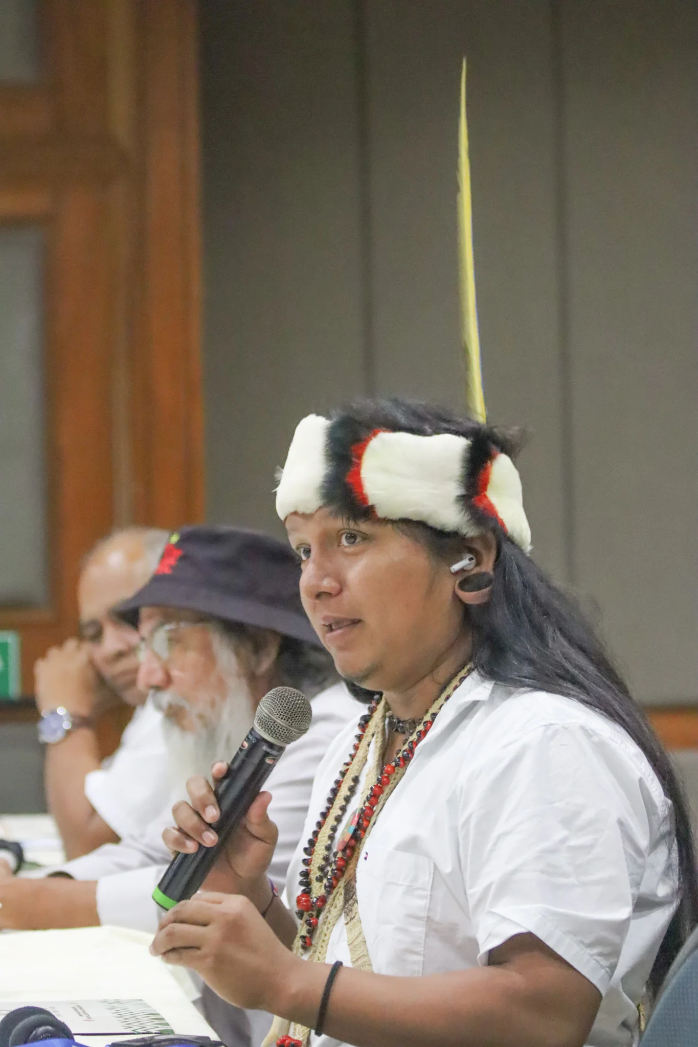 “Somos um povo de recente contato, de contato forçado a partir da indústria de petróleo. Não entendíamos o conceito do nosso próprio direito para defender nosso território, nossa casa. Tivemos uma consulta popular, onde o povo equatoriano pôde decidir sobre a exploração de petróleo no Parque Nacional Yasuni. E vencemos, mas estamos com problemas em implementar o resultado da consulta popular, com o cumprimento fiel do encerramento das atividades em Yasuní, que é a casa dos Waorani e outros dois povos isolados. O plebiscito apresentou um plano de 5 anos e a NAWE apresentou uma contra-proposta para o encerramento do Bloco 43, com a reparação ambiental e cultural do povo Waraoni. Quem temos que pressionar para que essa questão chegue aos governos nacionais?”, questionou a liderança.