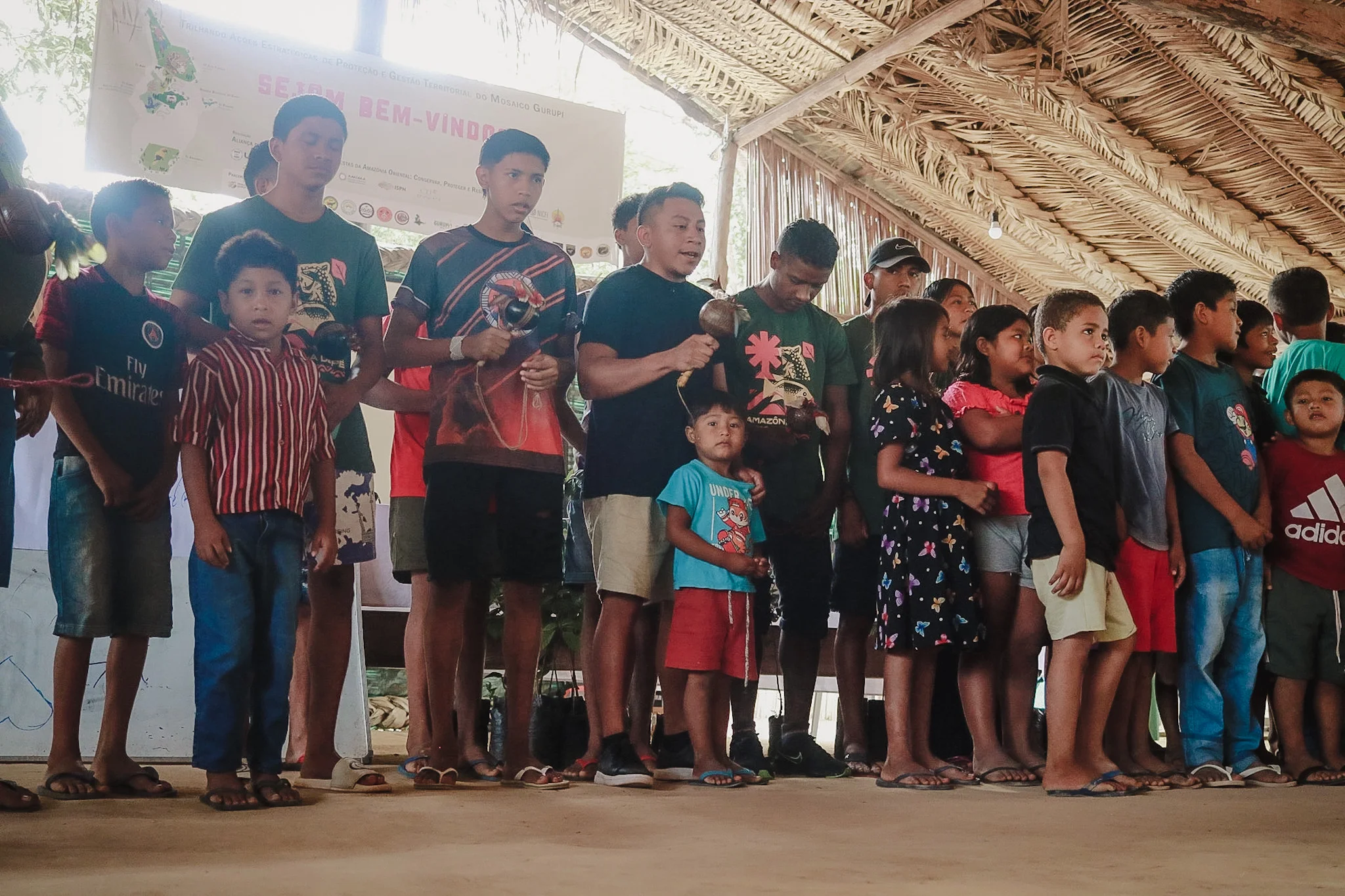 As crianças e adolescentes do Centro de Educação Escolar Indígena Bilíngue Guajajara, localizada na Aldeia Maçaranduba, também participaram ativamente da formação sobre Mudanças Climáticas, Carbono e REDD+ Jurisdicional. Além de se fazerem presentes no curso, os estudantes apresentaram projetos desenvolvidos no ambiente escolar, incluindo as vivências no programa Amazônia de Pé nas escolas indígenas que busca conscientizar, mobilizar e atuar politicamente para a conservação da floresta.