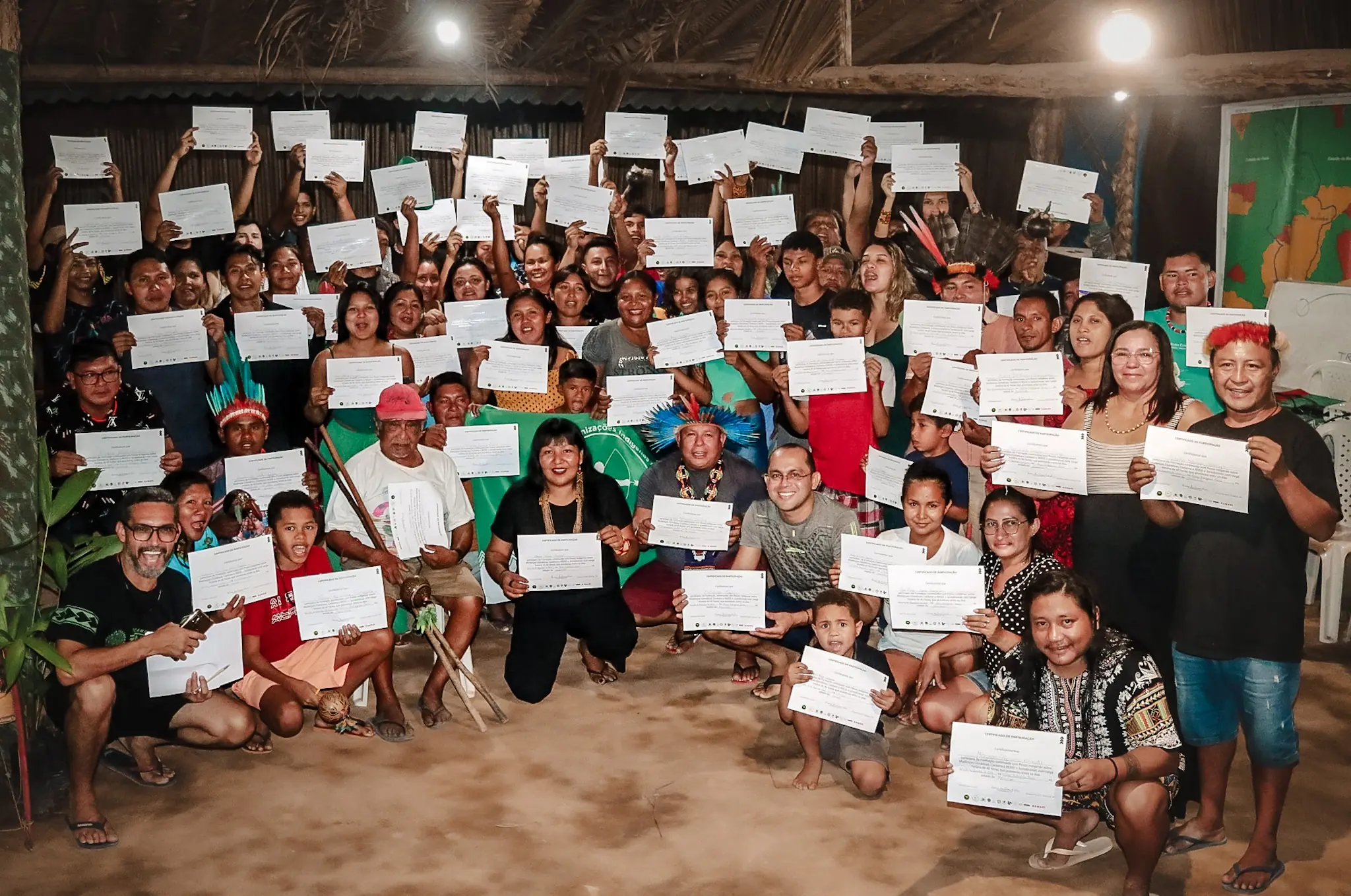 O encerramento da formação foi um momento de celebração e emoção, marcado pela entrega de certificados a 100 lideranças indígenas. O ato representou não apenas a conclusão do curso, mas também o reconhecimento do compromisso e da dedicação dessas lideranças na luta pelos direitos e pela preservação dos territórios indígenas. A cerimônia foi coroada com a apresentação de uma música composta por Nelson Tembé, que simbolizou a união, a força coletiva e a resistência dos povos indígenas, reforçando o espírito de luta e esperança que guiou toda a formação.