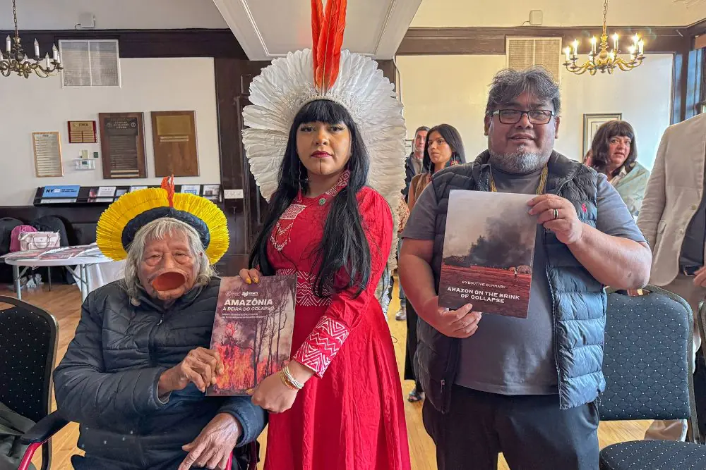 Durante a programação da Climate Week NY 2024, a Coiab realizou uma coletiva de imprensa com lideranças indígenas do Brasil, Equador e Peru para denunciar as crises e desafios enfrentados pelos povos indígenas da América do Sul. Na ocasião, as lideranças brasileiras destacaram a situação das queimadas e da pior estiagem registrada no último século, que atinge cerca de 150 territórios, localizados na Amazônia brasileira.