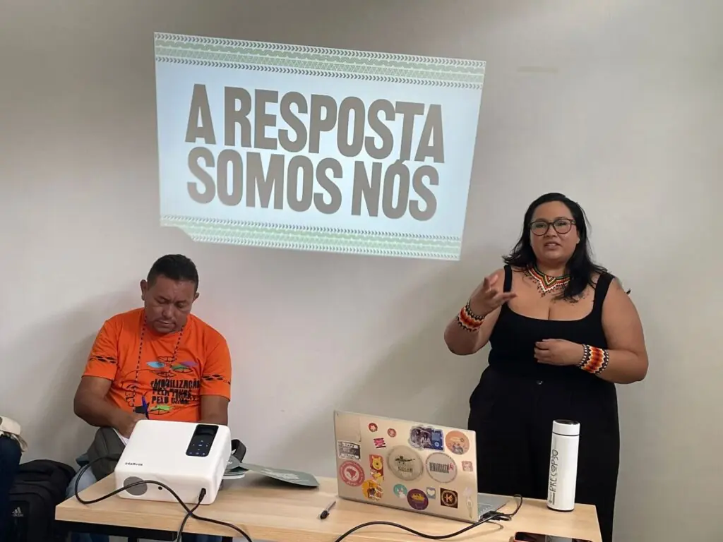 “Vamos, juntos, pensar em estratégias convergentes dos movimentos sociais da Amazônia para ocupar a COP30. É um compromisso coletivo; muitas das nossas lutas convergem porque estamos, em resumo, lutando pela garantia de direitos fundamentais das nossas populações perante uma crise climática global. E a solução passa pela escuta e reconhecimento das nossas vozes e contribuições para o equilíbrio climático”, afirma Alana Manchineri, assessora internacional da Coiab.