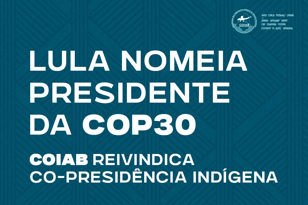 A Coordenação das Organizações Indígenas da Amazônia Brasileira (Coiab) recebe a notícia da indicação do embaixador André Corrêa do Lago como presidente da COP30 e Ana Toni como diretora executiva com boas expectativas. Com suas amplas experiências em negociações internacionais e na agenda climática, acreditamos que poderão contribuir para avanços significativos nas metas globais de enfrentamento à crise climática.