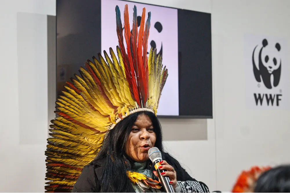 “Diferente dos governos que continuam negociando metas climáticas insuficientes e financiamentos vazios, nós temos liderado pelo exemplo, cuidando de nossos territórios, que são as áreas mais preservadas e ricas em biodiversidade da floresta amazônica. Se há uma autoridade climática no Brasil hoje, essa autoridade somos nós”, afirmou Alana.