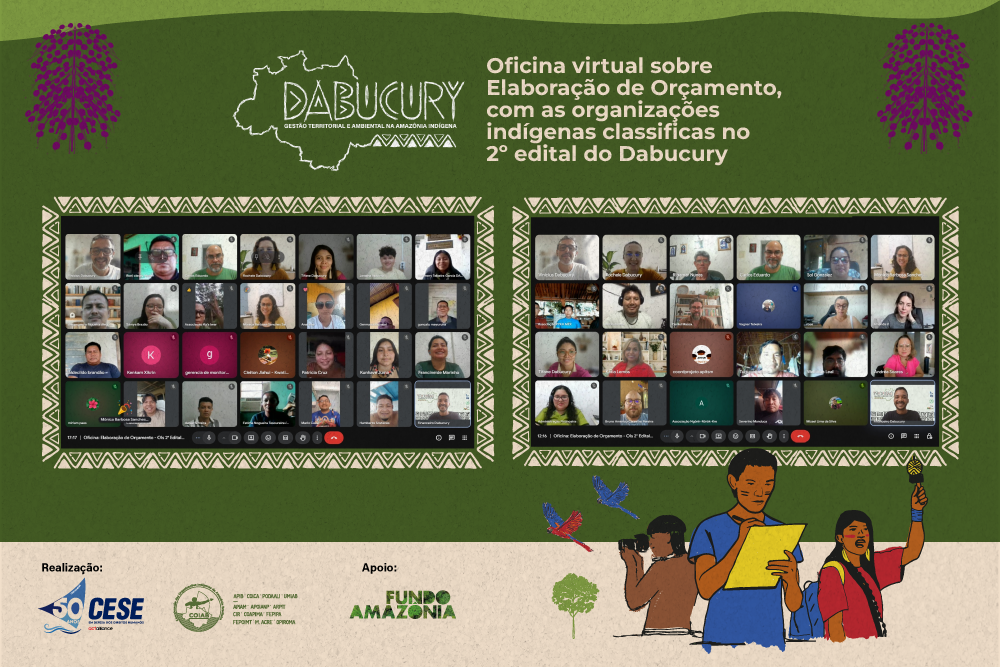 Na última quarta-feira, 04 de março, o Projeto Dabucury: Gestão Territorial e Ambiental na Amazônia Brasileira realizou a oficina virtual sobre elaboração de orçamento com as organizações indígenas classificadas no 2º edital. O encontro faz parte de um ciclo de oficinas virtuais promovido pela equipe técnica do Dabucury, com o objetivo de apoiar as organizações na etapa de aprimoramento das propostas e ajustes metodológicos de suas iniciativas.