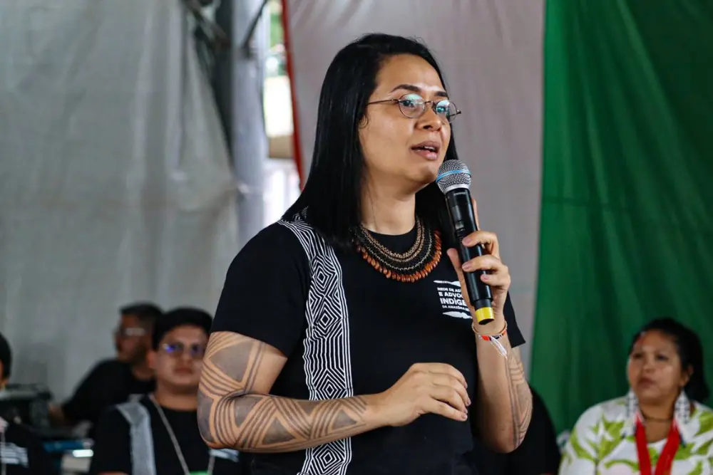 O momento contou com Kari Guajajara, coordenadora da Rede de Advogados e Advogadas Indígenas da Amazônia Brasileira, fazendo uma homenagem a Drª Cris Baré, que faleceu em 2024 e referência na advocacia indígena e teve papel fundamental na consolidação da rede. Kari Guajajara relembra que Cris lutou pelo movimento indígena até seu último dia de vida “No seu último mês de vida, ela estava escrevendo um projeto para Niatero, para conseguir contratar os nossos advogados e as e as nossas advogadas da Amazônia Brasileira. Não tem como formar uma mesa da advocacia indígena na Amazônia sem celebrar o trabalho, a memória da Drª Cris Baré. Não tem como formar uma mesa da advocacia indígena na Amazônia sem dizer que essa advocacia, ela não nasce de outras mãos, senão de uma mulher indígena, mãe que dedicou a sua vida para Coiab. Primeiro, ela atuou como secretária na secretaria executiva da Coiab. Ela começou na Coiab muito antes de ser advogada.”